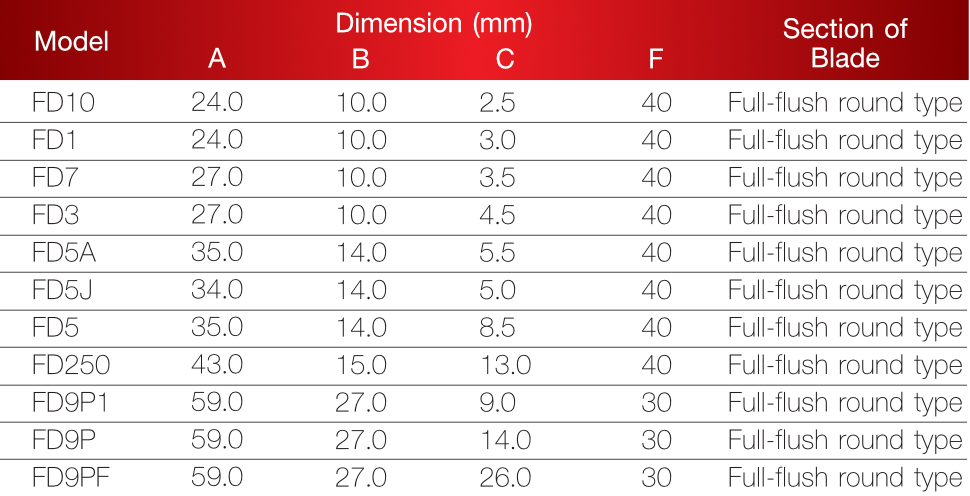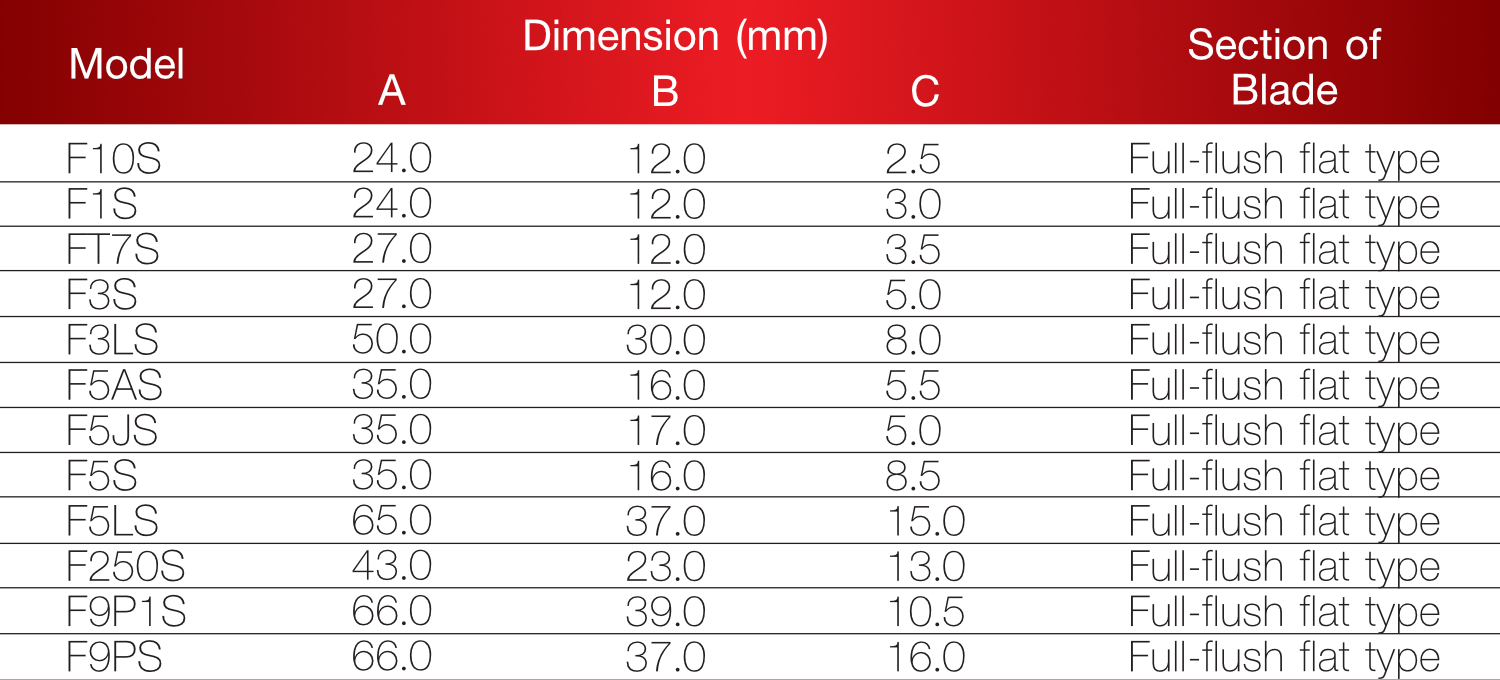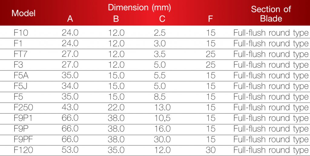 Blade can be locked with stopper when off-work for security. Blade-opening by pushing Release Lever down. Possible to cut plastic surface raceway at any desired angle with an attachment installed
