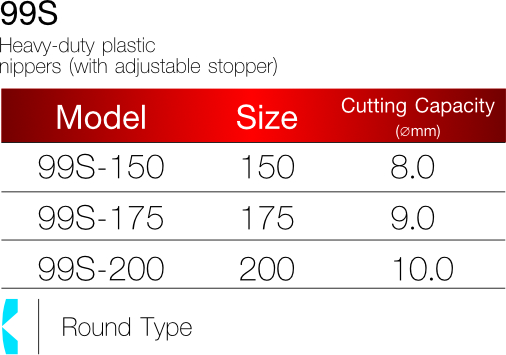 99S  Heavy-duty plastic nippers (with adjustable stopper)