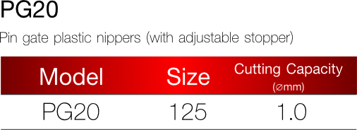 PG20  Pin gate plastic nippers (with adjustable stopper)